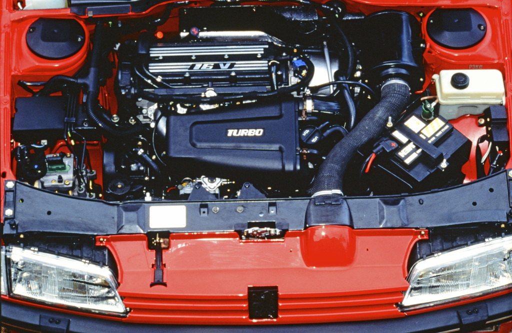 Sous le capot, un moteur 1.9 16 soupapes tout en aluminium, dérivé du bloc XU9 J4 de la 309 GTI 16.